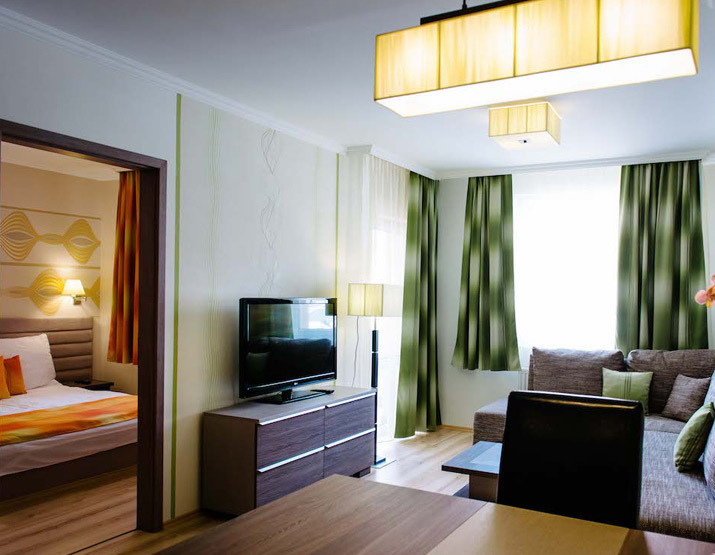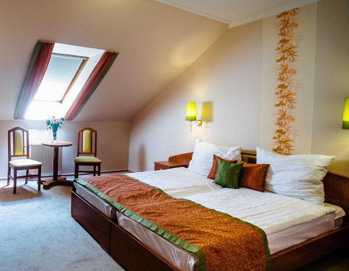A háromcsillagos wellness szállodában 16 apartman 26 kétágyas.