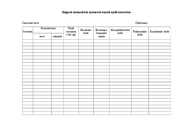 Iratminták nyomtatványok szigorú számadású nyomtatványok nyilvántartása szigorú számadású nyomtatványok nyilvántartása xls 15 kib szigorú számadású nyomtatványok nyilvántartását szolgáló táblázat szerkeszthető excel formátumban.